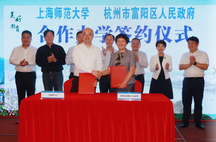 9月29日,学校与杭州市富阳区人民政府签署合作办学协议,在原有百年老校富阳新登中学的基础上成立上海师范大学附属杭州新登中学。富阳教育一直是杭州市乃至浙江省的一张“金名片”。此次,富阳区选择与上海师大合作,是希望充分依托并借力我校艺术教育学科门类齐全的独特优势。在未来,学校将举艺术教育特色之力,与富阳共同办好这所以艺术为特色的百年老校,使学校取得更高质量、更高水平的发展。
