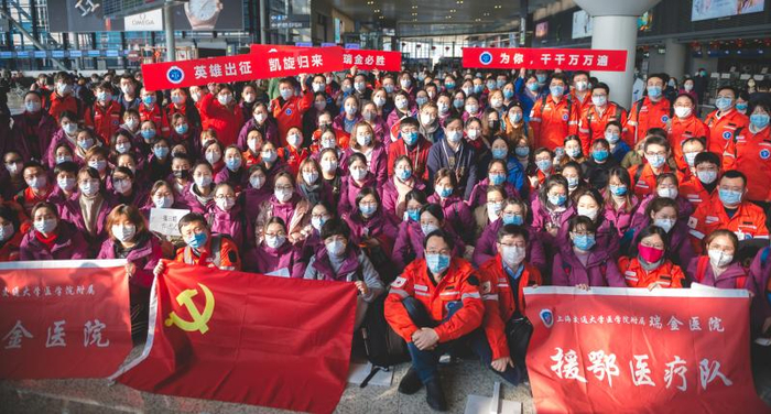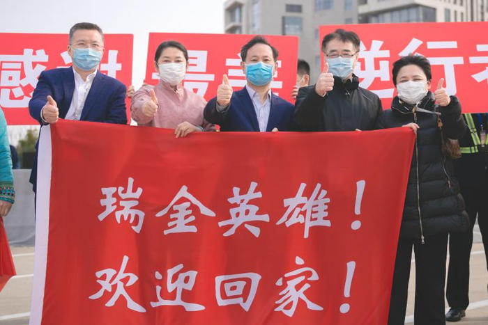 瑞金医院领导在机场迎接援鄂医疗队凯旋