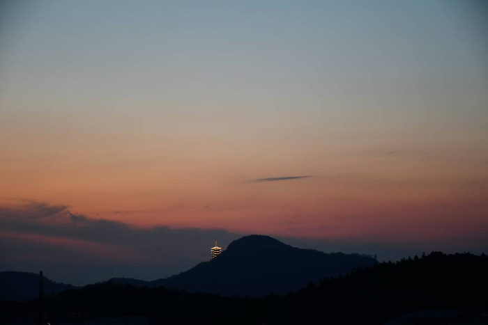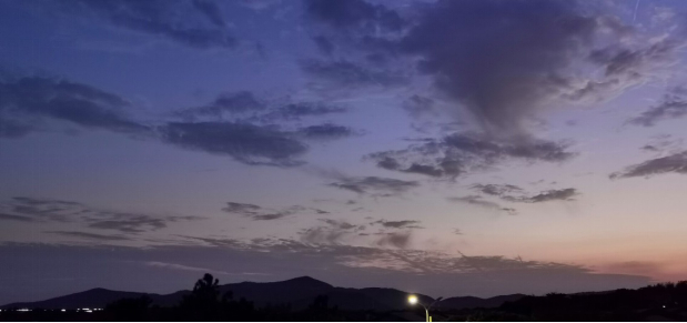 云朵的形状渐渐模糊,夕阳也将隐没自己的最后一丝光彩。但天空仍留有一片紫,一抹蓝,浓淡相间,晕染成好看的模样。“疏影横斜水清浅,暗香浮动月黄昏”,傍晚仿佛一盏静置的蝶豆花茶,重瓣相叠栖止杯底,轻瓣舒展浮于茶面,只留中部透明清淡,似有一种禅宗定力,又别有一番优雅韵致。使河海渐渐归于一种静谧,散发出独特的魅力。