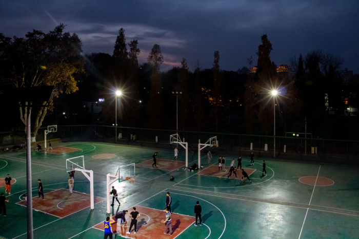 西康路1号的梧桐已在夜色中渐渐陷入沉默,而水之子们依旧在肆意奔跑,张扬着青春的色彩。今夜西康路的天空是一杯清爽的鸡尾酒,以深邃的海蓝呼应着篮球场的墨绿。篮球飞转间,挥洒汗水的水之子们不经意抬头,便迎来满眼的蓝,心旷神怡。