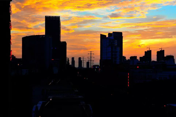 夕阳有诗情,黄昏有甜意。往日慵懒的飘云此刻厚重地堆在天空上,任由夕阳染得一片微黄,化身成一个个刚出炉的泡芙。再在顶层点缀奶油花云朵,整个奶油泡芙般的积云都完美地陈列在天空之盘上,给人入口即化之感。引得路过的水之子都不禁想含上一口,尝尝这河海黄昏的纯滑与香甜,体味在河海每一天的幸福快乐。