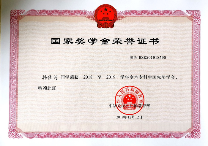 连续三年荣获国家奖学金