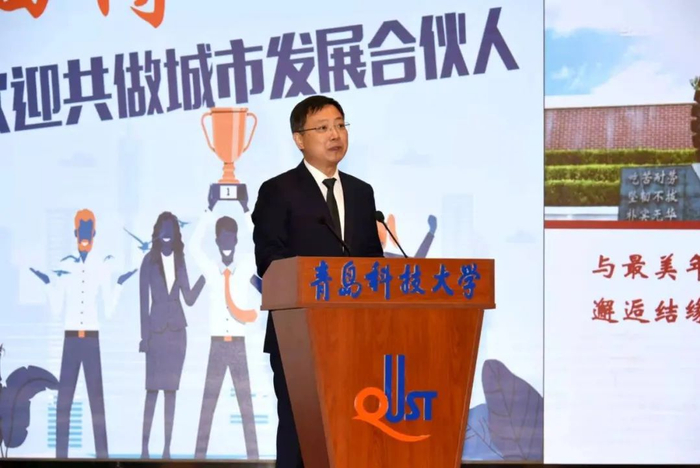 签约仪式前,举行了“淄博-名校人才直通车”活动青岛科技大学宣讲会、招聘会。活动现场,陈克正介绍了学校一流学科建设、政产学研融合、中德合作办学为主的国际化办学等三大办学特色。他在致辞中表示,在淄博市委、市政府的大力支持下,在各位领导、企业家对学校发展的关心下,“淄博-名校人才直通车”再次开进了青岛科技大学。青科大与淄博市的合作结缘于化工,近3年已有450余名毕业生在淄博实现了就业创业。在“淄博人才金政37条”等强有力的人才政策吸引下,坚信未来会有更多的科大学子成为淄博的“城市发展合伙人”。