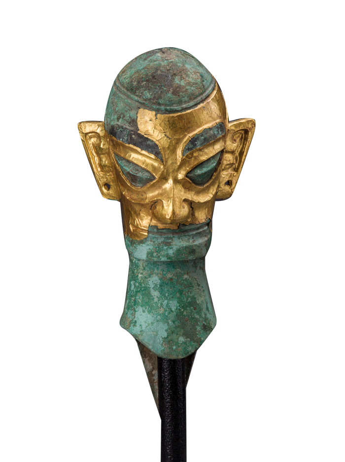 青铜戴冠纵目面具、太阳神鸟金饰、