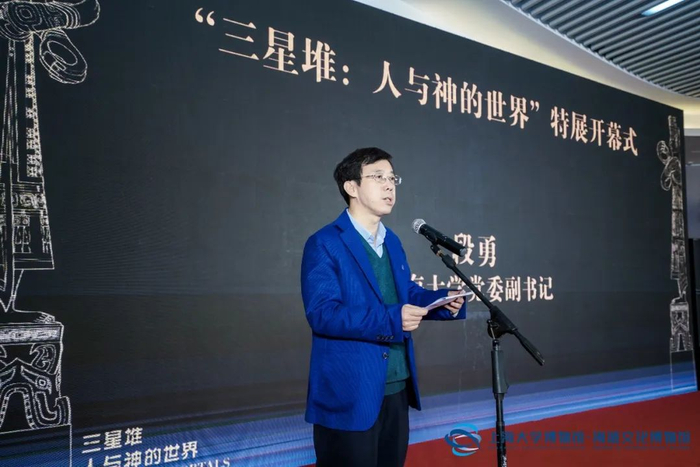 刘昌胜校长在欢迎辞中表示,“三星堆:人与神的世界”特展的举办,不仅是上海大学与四川省文博单位在展览方面的首度合作,也是国内高校博物馆办的首个三星堆专题展。上海大学历来非常重视考古文博学科建设,学校在上个世纪八十年代就设立了考古与文博专业,近年来更是充分发挥综合性大学的优势,聚焦中国古代文明、博物馆与文化遗产保护、科技考古与陶瓷技术分析方向积极开展学术研究取得了不少重要突破,形成了自己的特色优势。