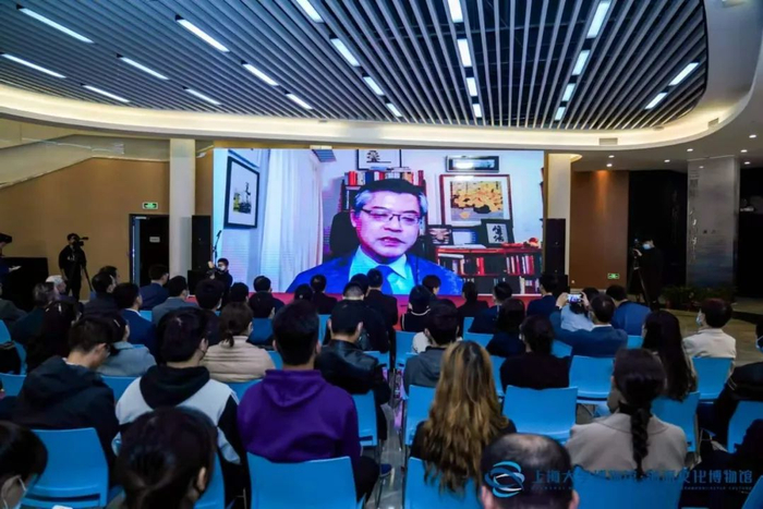 美国人文与科学院院士、旧金山亚洲艺术博物馆馆长许杰发来视频致辞,他对特展能够在自己的母校——上海大学举办表示衷心祝福,并预祝展览取得成功。