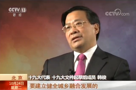 在公开报道中,韩俊还是十七届中共中央政治局第十一次集体学习主讲专家,参加过十七届三中全会文件起草工作,也是十九大文件起草组成员。
