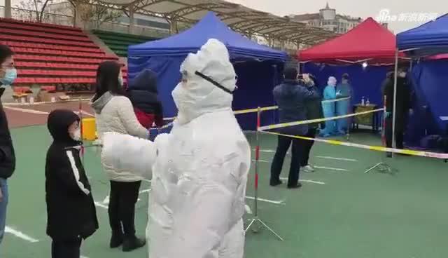 孙荣侠单位和社区都通知了她做核酸检测。21日一早,她就跟着邻居们来到检测点。“我们社区群里通知大家做核酸检测了。早上8:00我们就在楼下集合了,物业组织大家在楼下点完名之后,9点我们过来了。现场大家分批次检测,非常有秩序,一点都不乱。全员检测让我们也很安心。”
