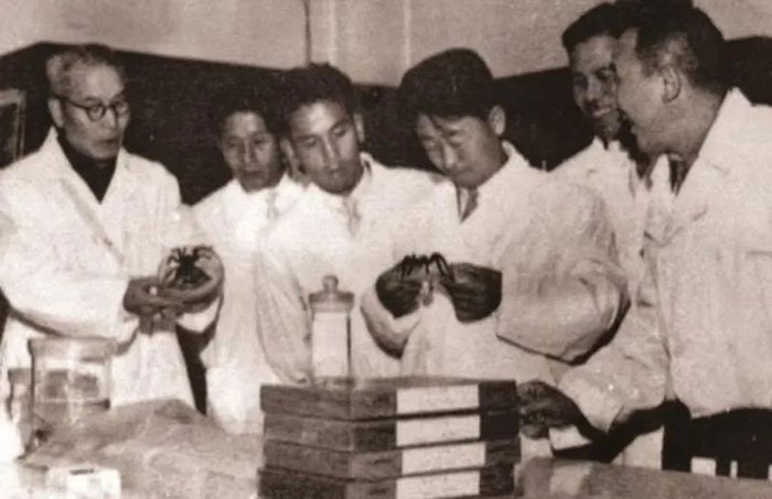抗美援朝期间,王凤振(左一)与医学生物专家组成反细菌战检验队,开展对美国细菌武器的研究