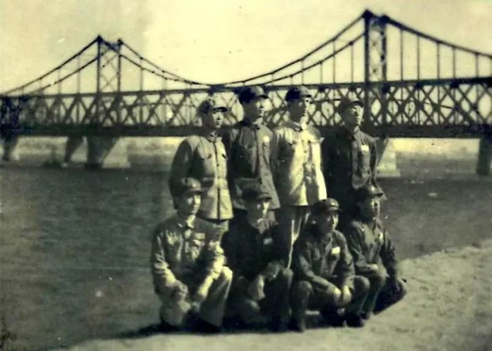 西南军区兽医学校参加抗美援朝的部分学员在鸭绿江边合影