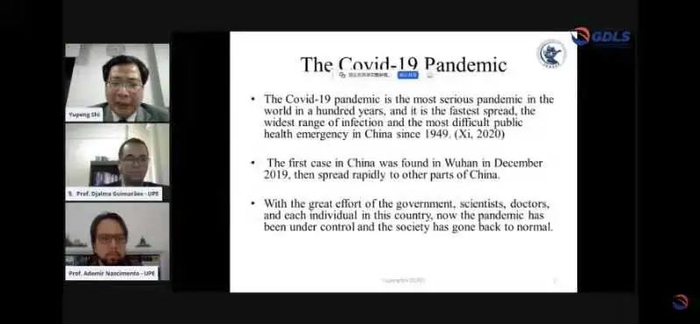 伯南布哥大学佩德罗校长和孔子学院巴方院长卡尔在致辞中感谢中央财经大学为伯南布哥大学及其孔子学院捐赠防疫物资,鼓励中巴两国学者疫情期间积极参加线上学术研讨。