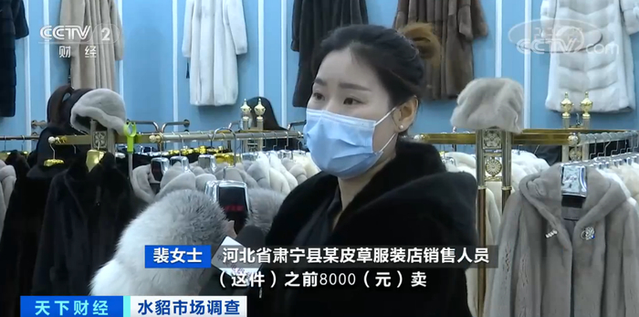 河北省肃宁县某皮草服装店销售人员裴女士:这件之前卖8000元,但是现在8000元连皮料都买不回来。貂衣原材料价格涨了,但是顾客的心理价位没上来,所以购买率肯定没那么高。