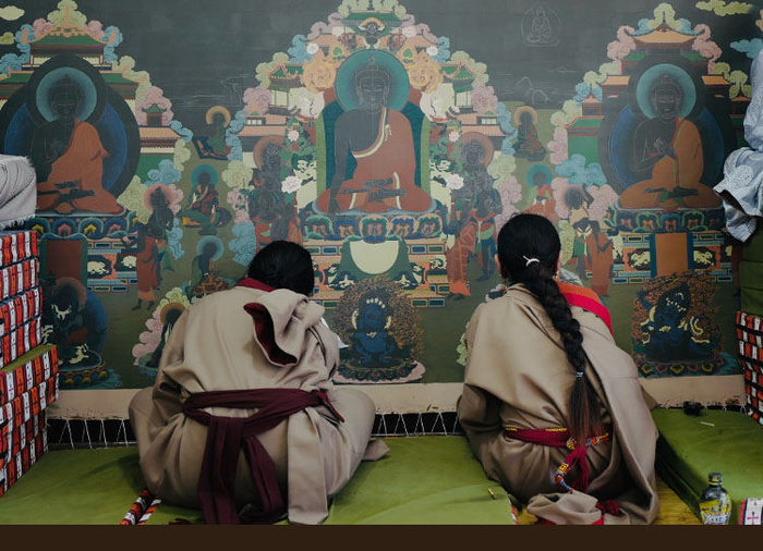 在过去的传统中,女孩子是没有资格画唐卡的,只能务农,但在传习所,很多像色钦拉姆这样的普通藏族女孩,和男孩一样,有了学习唐卡的机会,并可以以专业画师为职业,继续创作。