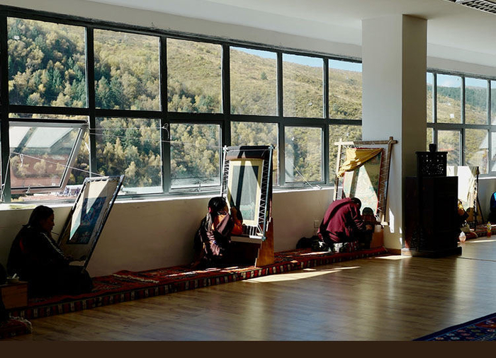 7年的学习带给学生们的,除了勇气和淡定,更重要的是让他们学会了如何面对自己。研习所也在不断发展着,2014年,在多方资助下,上海金泽创办了一间唐卡传习所。寒冷天气会让颜料僵硬,达不到色彩效果,所以画师们冬春在上海画画,到了夏秋,又回到阿坝。在这一去一回中,觉囊唐卡也从高山的草原庙宇走向了江南的青瓦白墙,很多画师也对上海有了故乡的情感。