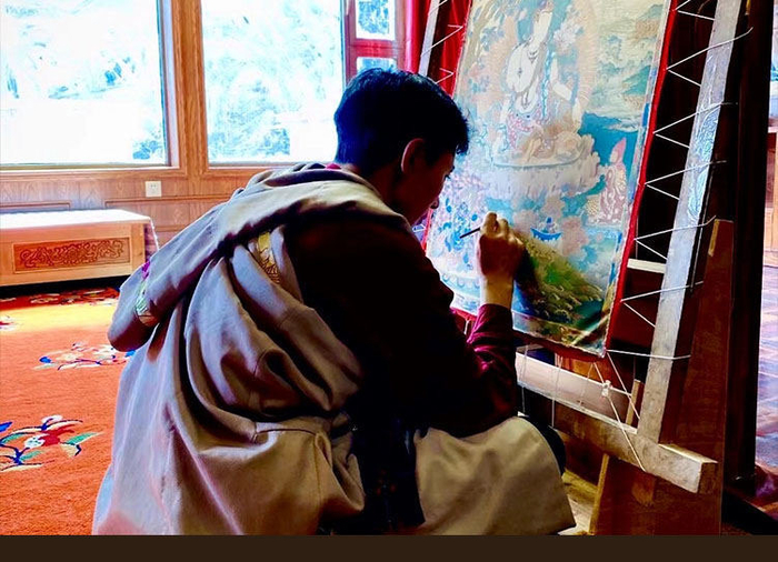 精准的度量、饱满的色彩、流畅的线条,是觉囊唐卡的特殊技艺。