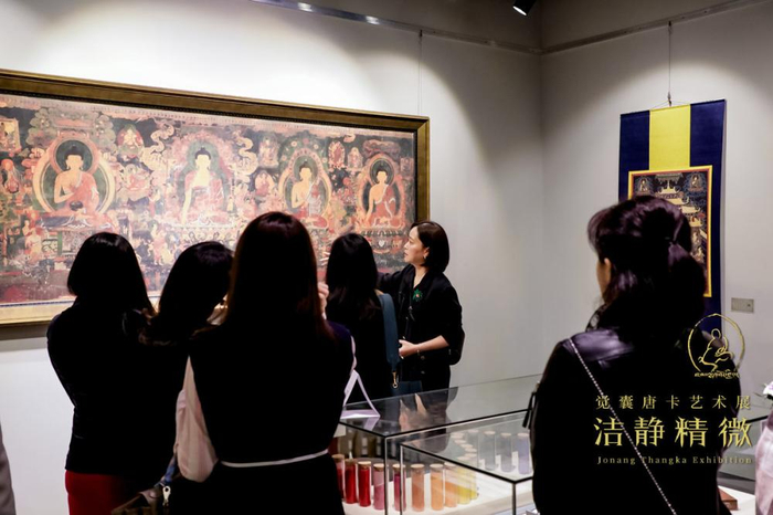 展览现场,来宾在听唐卡的介绍