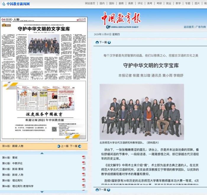 近日,《中国教育报》报道了北京师范大学古代汉语研究所教学团队的故事——