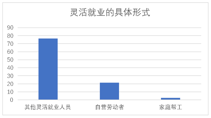 受访青年中的就业情况比较稳定,“全职就业”比例最高。在灵活就业的青年人群中,具体的就业形式包括:其他灵活就业人员76.3%,自营劳动者21.3%,家庭帮工2.4%。