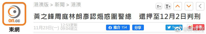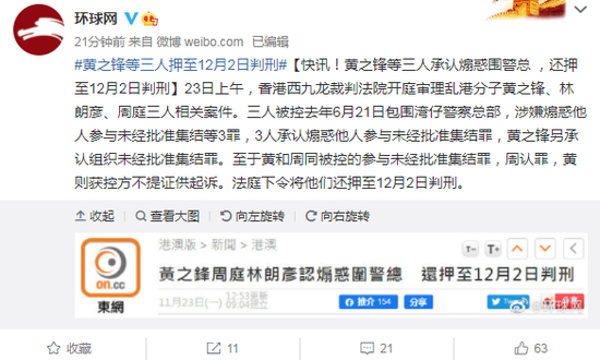 原标题:快讯!黄之锋等三人承认煽惑围警总 ,还押至12月2日判刑