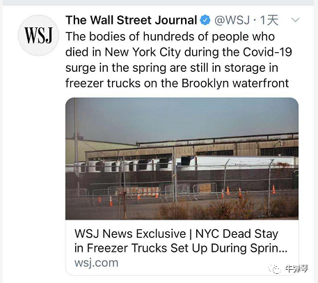 《华尔街日报》一篇独家报道刷屏了,披露了一个残酷的现实:就在纽约布鲁克区的日落公园,自今年4月起,有650具尸体一直被放在冷冻卡车里……