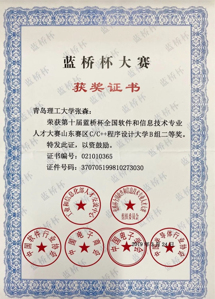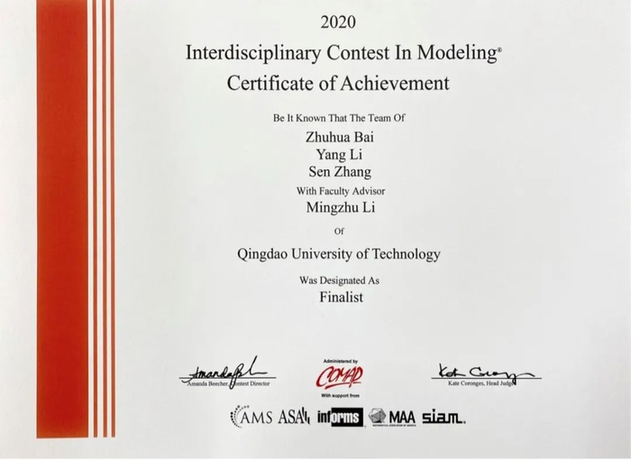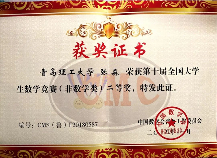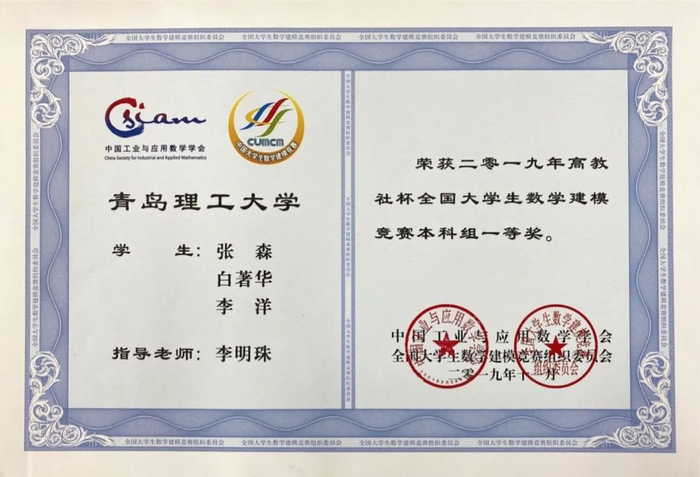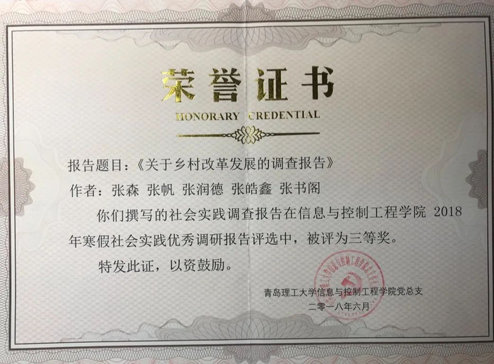 信息与控制工程学院寒假社会实践报告获三等奖、第九届Mathorcup高校数学建模挑战赛优秀志愿者、青岛市“爱心大学生”。
