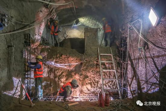 2017年11月,东四十条站的“穿越”专项施工方案及应急预案通过专家评审。经过3年的精心筹备和精细施工,2020年11月,项目部正式进入啃“硬骨头”的攻坚期。这其中,由于下穿既有2号线车站就涉及到2个特级风险源,这场穿越也被视为新建车站结构施工中的最难一步。
