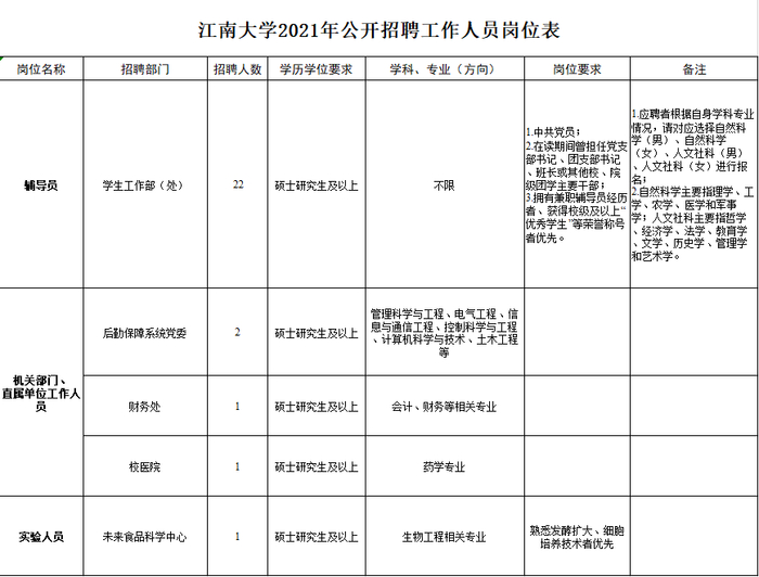 原标题:27个岗位,等您来!江南大学2021年公开招聘启事发布!