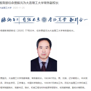 原标题:教育部任命贾振元为大连理工大学常务副校长