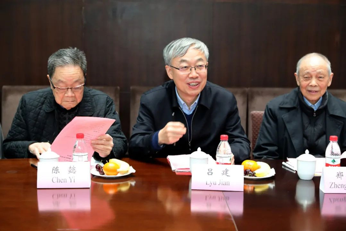 会谈中,胡金波和吕建对曹德旺一行来访南大表示热烈欢迎,称赞曹先生是杰出的创业家、企业家、慈善家,感谢他多年来致力公益慈善,大力支持南京大学教学、科研和人才培养工作并取得了显著成果。曹德旺先生先后捐赠4000万元支持南大发展,其强烈的家国情怀和社会责任感、敬天爱人的办企特点、“钢铁战士”般的坚毅品格,与南大“与时代同呼吸,与民族共命运,谋国家之强盛,求科教之进步”的光荣传统、“大哉一诚天下动,如鼎三足兮”“诚朴雄伟,励学敦行”的校歌校训精神一脉相通,可以说是精神文化上的“南大校友”。当前,南京大学正处于继往开来、接续奋斗,集聚资源、提升内涵,稳中求进的新阶段,正需要像曹德旺先生这样的有识之士推进校园公益事业迈上新台阶,广泛汇聚各方力量,协力为南大聚力内涵式发展,着力高质量提升,为建设“第一个南大” 、推进“双一流”接续奋斗。