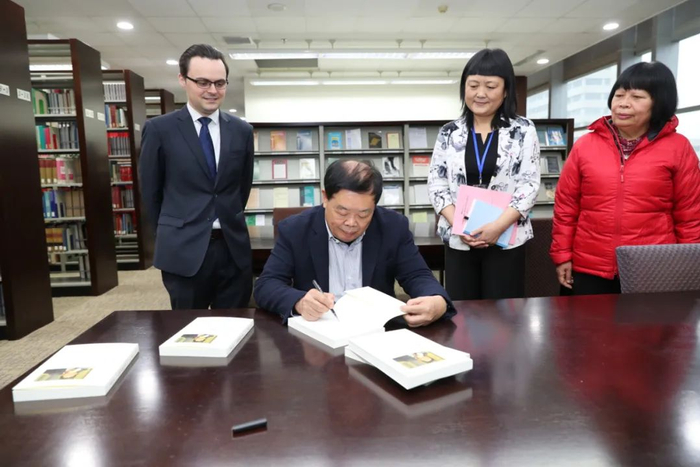 在南京大学-约翰斯·霍普金斯大学中美文化研究中心,曹德旺听取了中方主任从丛和美方副主任柯俊翰(John Urban)的情况介绍,对这所成立于1986年的知名跨国教育合作机构的历史、发展、对中美关系的贡献给予了充分肯定。