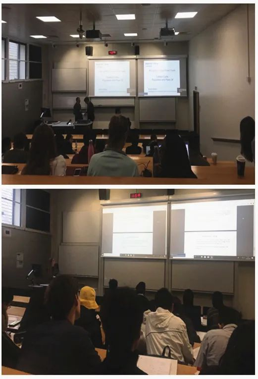 上课过程中,教师和学生对于现代化电子设备(如笔记本、平板电脑等)的使用较多,且多使用常规办公软件。师生互动较多,以旁听者的观感,氛围较轻松,大多数课程教学中,学生可随时自由提问,相对的,这种轻松氛围背后也对任课教师提出了较高的学识要求和备课要求。我感触特别深刻的一个细节是,平日里不同教师的穿衣风格可能有所不同,但我看到的每一位老师在理论课授课时一定是穿着正装(且多数打着领带),这种仪式感也从侧面体现了他们对于教学工作的重视。