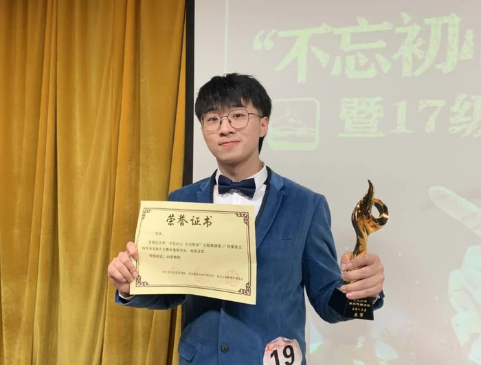 “希望学弟学妹们能够养成课后整理笔记、预习、钻研的习惯,尤其是格外注重大一习惯养成。踏踏实实地度过每一天,结合兴趣,拓展阅读面,完善知识体系架构,提高表达能力和英语水平。在西大收获梦想和未来!学弟学妹们加油!”