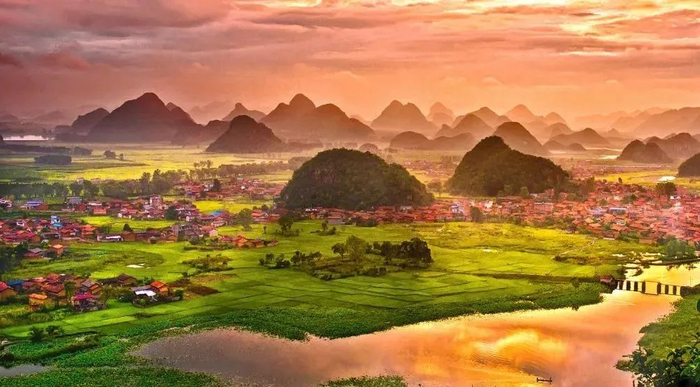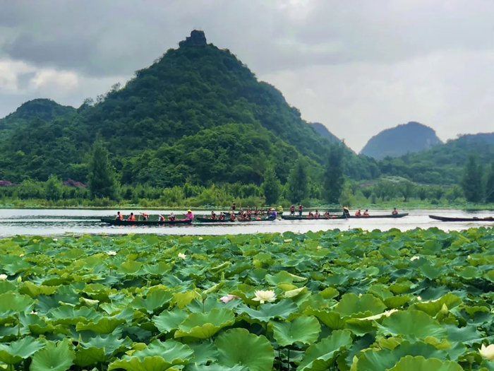 普者黑,为彝语,意为“盛满鱼虾的湖泊”,以“水上田园、彝家水乡、岩溶湿地、湖泊峰林、荷花世界、鱼鸟天堂”等景观而著称。