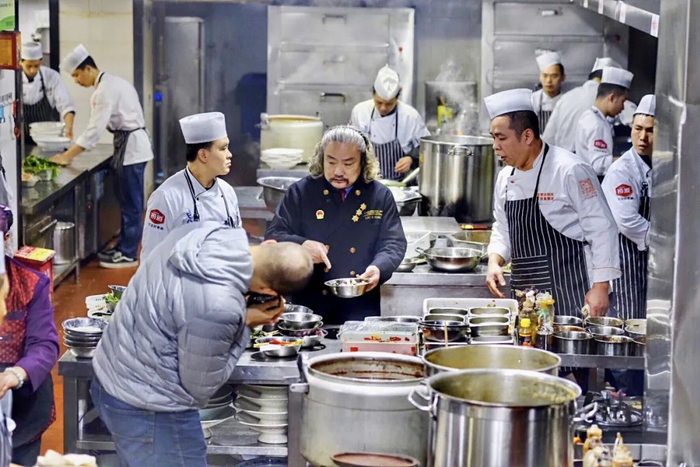 刘波平烹调工作中现场指导徒弟们 受访者供图