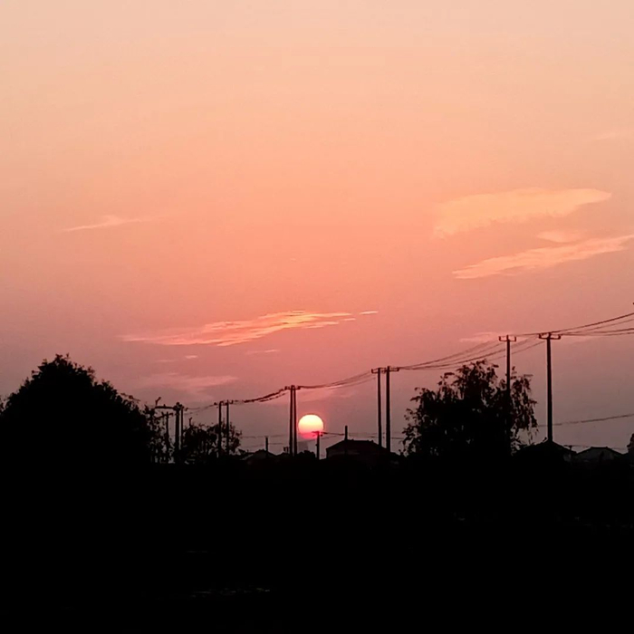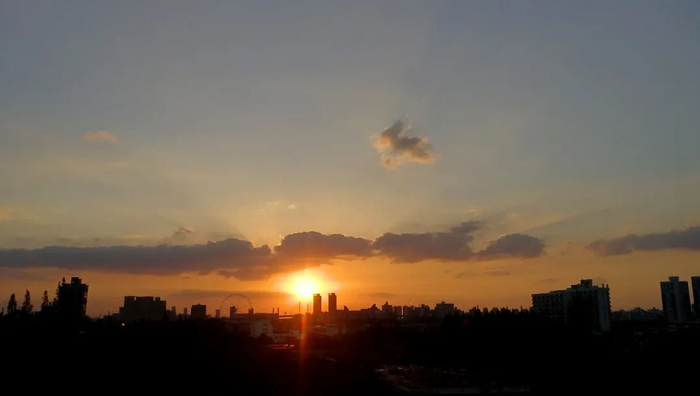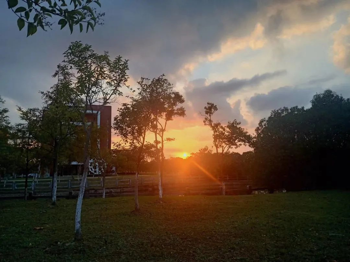 天边的赤霞像打翻的鲜榨柳橙汁