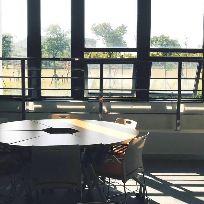 在食堂挑一个靠窗或露天的座位