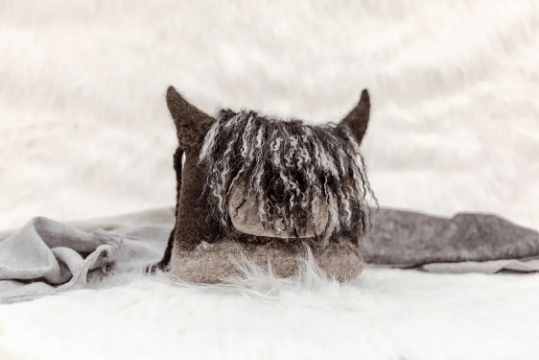 MOUMIA 牦牛包每款都拥有着趣味卷“刘海”,整体系列原料来自西藏果洛地区海拔3000米以上的纯天然牦牛绒,未经工业漂白染色,还原淳朴本色。包身由果洛牦牛绒制作技艺传承人用湿毡技术手工一体成型,装饰卷毛采用来自宁夏地区高品质滩羊毛,全包材料100%纯天然。肩带用传统编织手工艺编织而成,可自由调节长短。