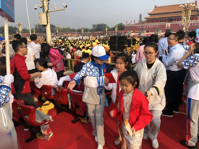 2019年10月,我校114名志愿者分别负责新中国成立70周年庆祝活动观礼台和彩车人员服务,以良好的状态和专业的水平圆满完成此次任务。