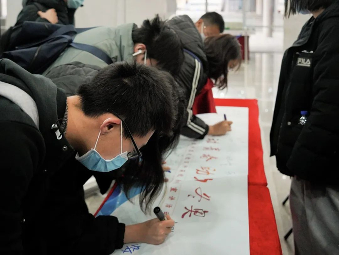 同学们深受鼓舞,现场气氛热烈、掌声迭起。宣讲结束后,同学们纷纷在卷轴上签名留言,表达对北京冬奥会的期待与祝愿。