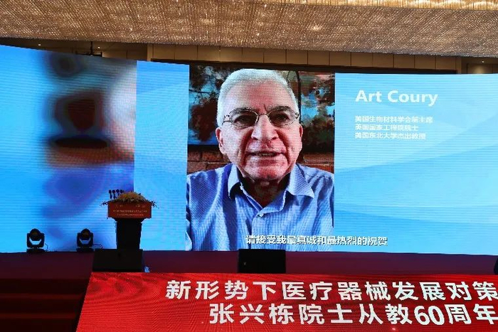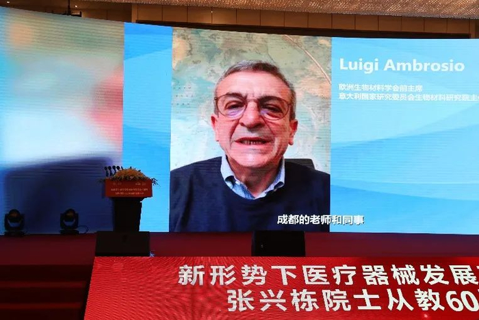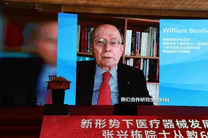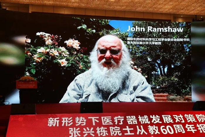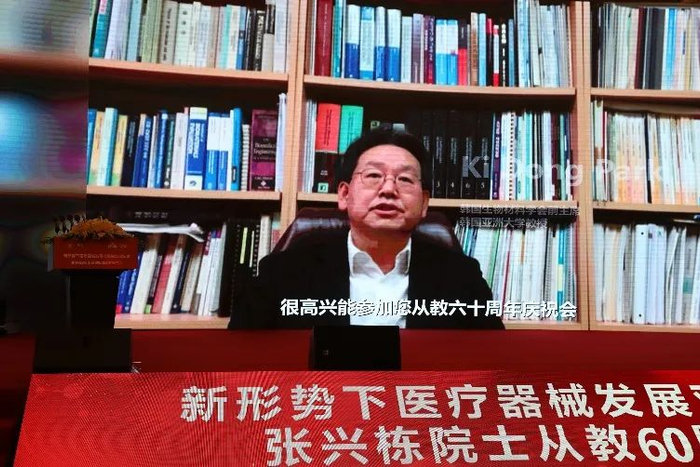 屠海令院士在致辞中回顾了与张兴栋院士交流合作的往事,对张兴栋院士严谨求实的治学态度和孜孜以求的科研精神表示敬意。英国皇家学会会员、英国皇家工程院院士、医学院院士William Bonfield,国际生物材料科学与工程学会联合会前主席、美国生物材料学会前主席、美国国家工程院院士、医学院院士、中国工程院外籍院士Nicholas Peppas,美国生物材料学会前主席、美国国家工程院院士Art Coury,欧洲生物材料学会前主席、意大利国家研究委员会生物材料研究院主任Luigi Ambrosio,国际生物材料科学与工程学会联合会前主席、韩国科学技术研究院教授Young Ha Kim,国际生物材料科学与工程学会联合会前秘书长、澳大利亚墨尔本大学教授John Ramshaw,美国国家工程院院士、医学院院士Tony Mikos,韩国生物材料学会前主席、韩国亚洲大学教授Ki-Dong Park,通过视频对张兴栋院士从教60周年表示祝贺。谢和平院士等多位国内外院士向大会发来贺信,对张兴栋院士从教60周年和院士论坛的召开表示祝贺。