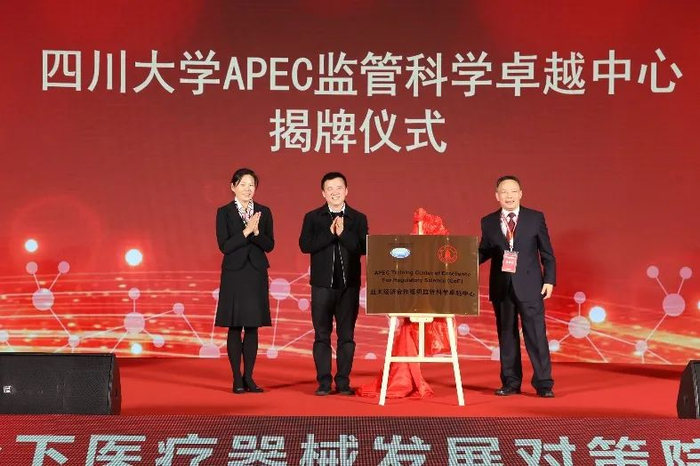 会上举行了四川大学生物医学工程学院揭牌仪式、四川大学双聘院士与特聘教授聘任仪式、四川大学APEC监管科学卓越中心揭牌仪式。王建国书记和张兴栋院士为生物医学工程学院揭牌。李言荣校长为屠海令等双聘院士,以及肖家华、邹学明、周辉、郑攀、訾振军、解江冰等特聘教授颁发聘书。江德元司长、APEC监管协调指导委员会副主席何莉、张林副校长为卓越中心揭牌。