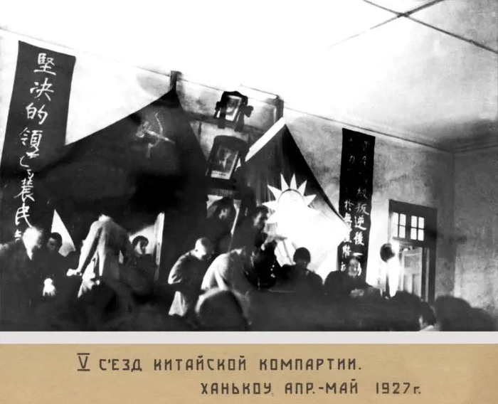 1927年,在大革命处于生死存亡的危急关头,党的五大于4月27日至5月9日在武汉召开。从开幕式现场照片上可以看到,马克思、列宁、孙中山的照片依次悬挂在墙面正中,两侧分别悬挂中国共产党和国民党党旗——这是党的历史上唯一一次有国民党代表团出席的党代会。