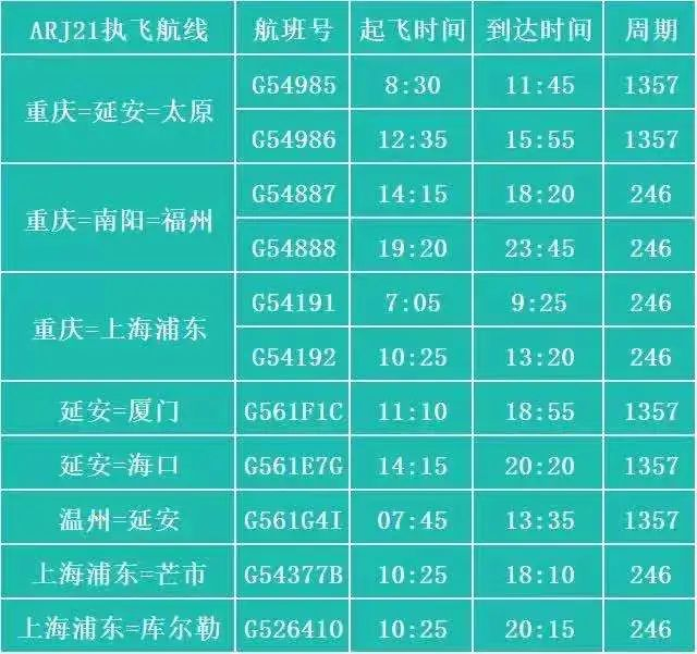 ARJ21执飞航线航班时刻表 华夏航空供图