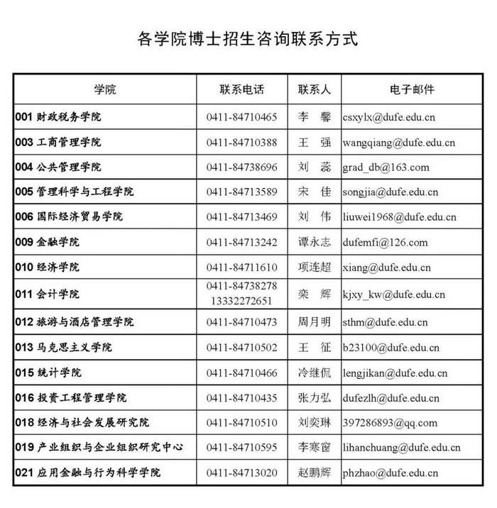 通讯地址:辽宁省大连市沙河口区尖山街 217 号东北财经大学研究生院招生办公室;