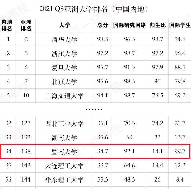 全国34位,亚洲上升10位!2021年QS亚洲大学排名公布,暨南再创佳绩!