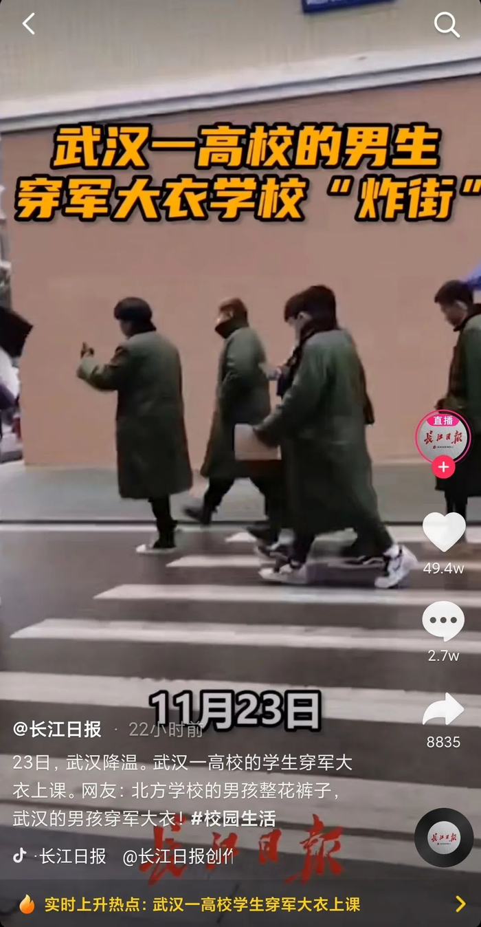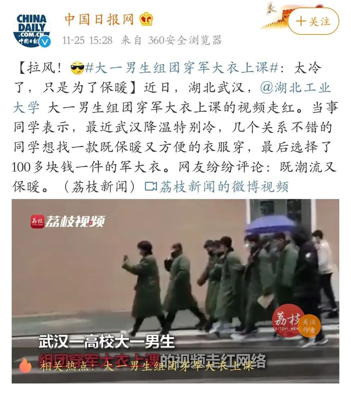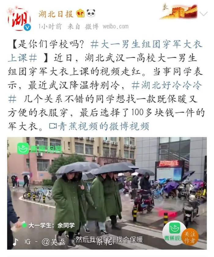 (湖小工:同学!“奶奶牌花棉裤”暖和吗?)