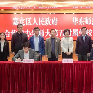 华东师范大学与嘉定区人民政府于11月12日签署合作协议,共同推进华东师范大学第五附属学校建设。华东师大在嘉定区已形成办学类型多元化、特色化的基础教育学校矩阵。