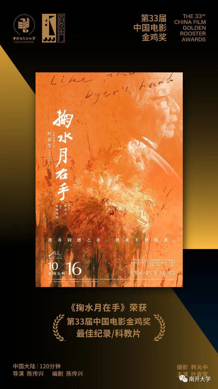 刚刚,第33届中国电影金鸡奖颁奖典礼举行,讲述96岁古典诗词大家叶嘉莹先生传奇人生的纪录片《掬水月在手》获“最佳纪录/科教片奖”。