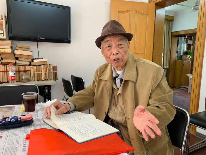 陶瑞滨有几十本笔记,记录了自己从前的工作生活经历,图为他在翻看回沪后重新整理的笔记