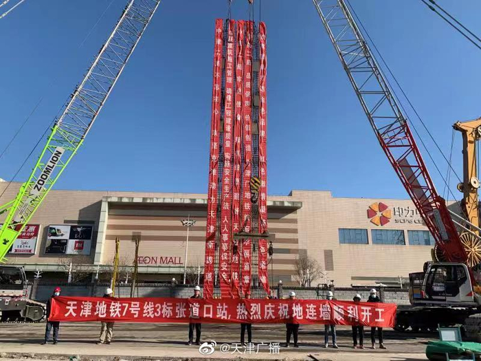 天津地铁7号线张道口站首幅地连墙开始成槽施工